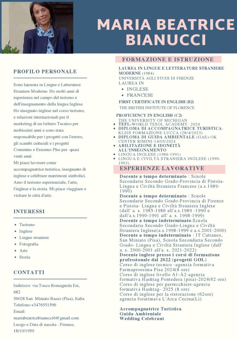 Accompagnatori turistici Effettua il login per vedere i dati dell'inserzionistaCerco lavoro saltuario con accompagnatrice turistica in Italia e in Toscana in pullman o treno e anche a San Miniato(Pisa) e zone limitrofe a piedi o in pullman.